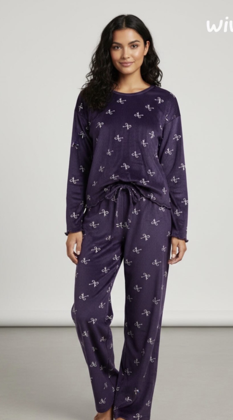 بيجامة بدون ازرار باللون النهدي ببيونه زهر