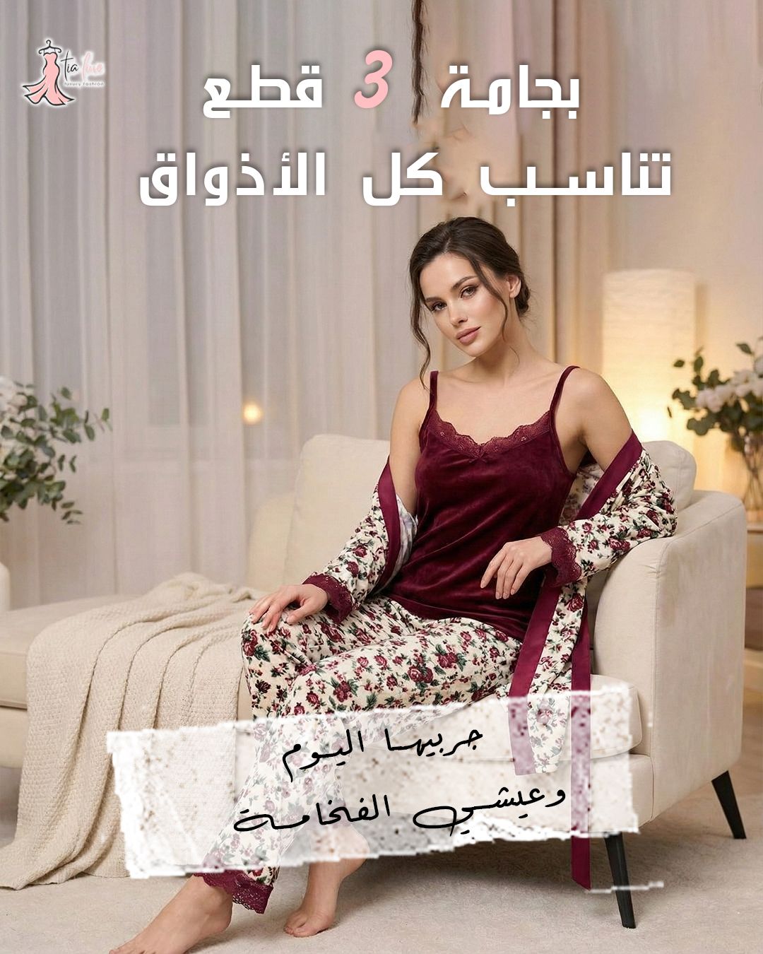 كن أول من يقيم “بيجامه ٣ قطع باللون البرغندي مزين باللورد”
